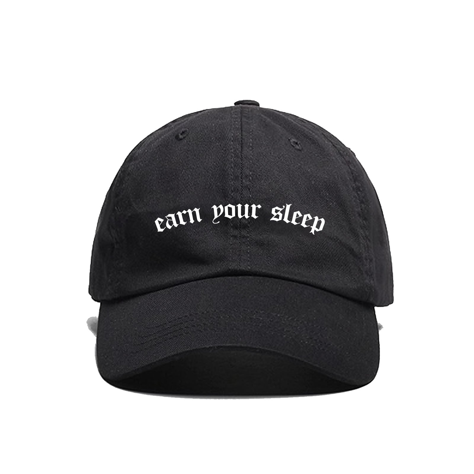 Relaxed fit with buckleback Dad Hat has a naturally curved bill, breathable embroidered eyelets, and earn your sleep logo embroidered on the front.